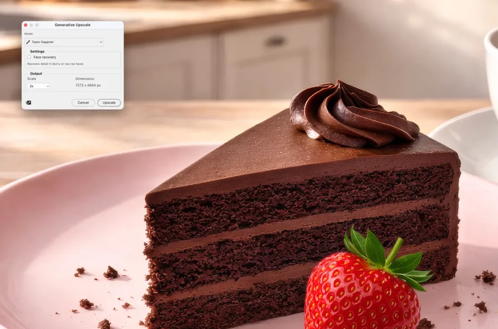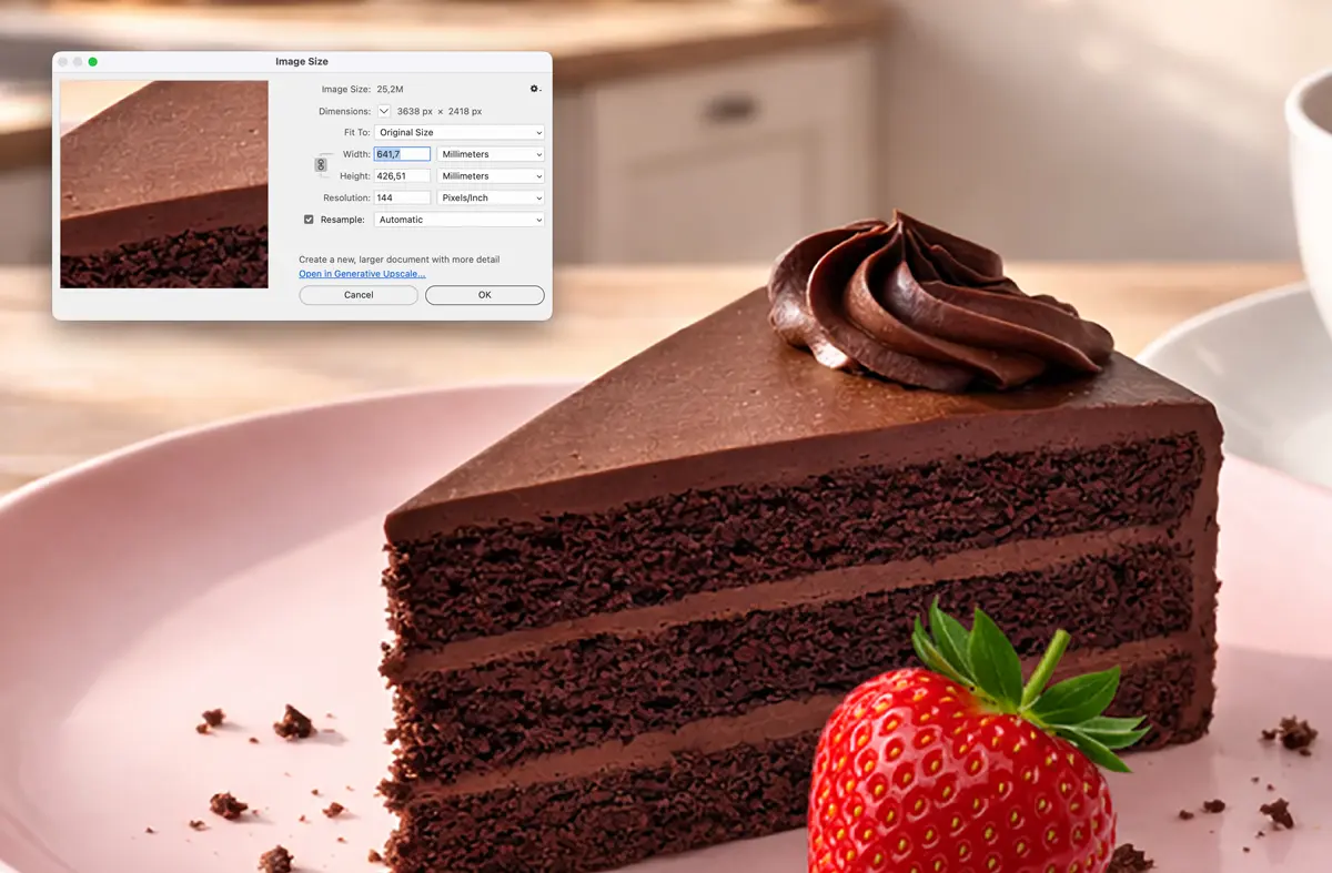 Funkce Generative Upscale řeší problém, který zná každý grafik: klient pošle malou fotku a potřebuje ji použít ve velkém formátu.