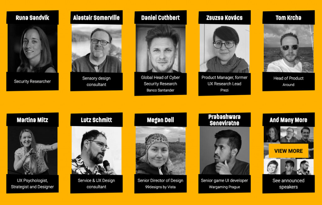 Na akci vystoupí například Philip Bonhard z britské Lloyds banky se svým tématem podvodná identita, kterou popularizovaly filmy jako Tinder Swindler nebo Inventing Anna. S Lutzem Schmittem pak prozkoumáme, jak designovat, a přitom brát v potaz koncept digitálního soukromí. Od spoluzakladatele jednoho z nejpopulárnějších nástrojů pro designéry Adobe XD Tomáše Krchy se dozvíme, jak z hlediska product developmentu buduje „Zoom budoucnosti” – Around, a bývalá lotyšská doktorka Marina Petrakova, oceněná titulem Forbes 30 pod 30, nám přiblíží praktické aplikace VR a zároveň zboří nejeden VR mýtus.