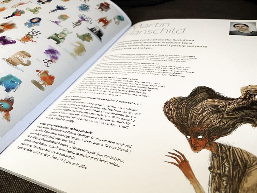 Rozhovor s autorem obálky Martinem Hanschildem si můžete přečíst na šesti stranách. Velkou část zabírají krásné ukázky jeho práce, kterou možná znáte i z reklam na Domestos, kde tvořil záchodové „hnusáky”, ale má toho za sebou samozřejmě mnohem víc. Jeho práci můžete blíže prozkoumat i v rubrice Krok za krokem, kde popisuje vznik obálky. Dalším rozhovor je se svatebním fotografem Jiřím Tvarohem, dozvíte se jak pracuje, s jakou technikou a specifika focení svateb. O velmi očekávané publikaci Typokniha je rozhovor s jejím autorem Filipem Blažkem, která by neměla chybět v knihovničce nikoho, kdo graficky zpracovává texty. Což jsme asi všichni.