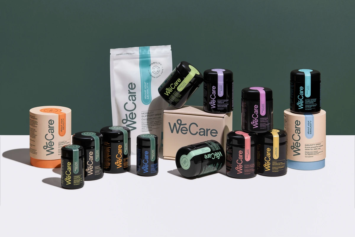 „WeCare nás oslovilo na samém začátku své cesty — právě ve chvíli, kdy byl připraven první produkt ke spuštění. Naším úkolem bylo vytvořit prémiovou identitu značky, která by WeCare ustavila jako měřítko v oblasti well-beingu — značku, jež přirozeně propojuje vědu, výzkum, kvalitu, funkčnost a estetickou přitažlivost. Ambice byla jasná: etablovat WeCare jako špičkového hráče na trhu doplňků stravy, vybudovat rozpoznatelnou přítomnost v celé Evropě a získat vedoucí pozici v segmentu well-beingu v Česku a na Slovensku.