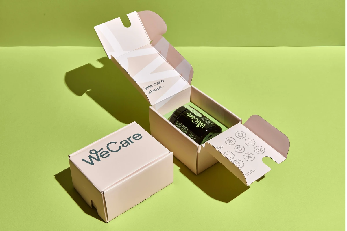 - WeCare vstoupilo na trh v době, kdy byl připraven teprve první produkt — Marlon Studio budovalo celou identitu značky od nultého bodu.