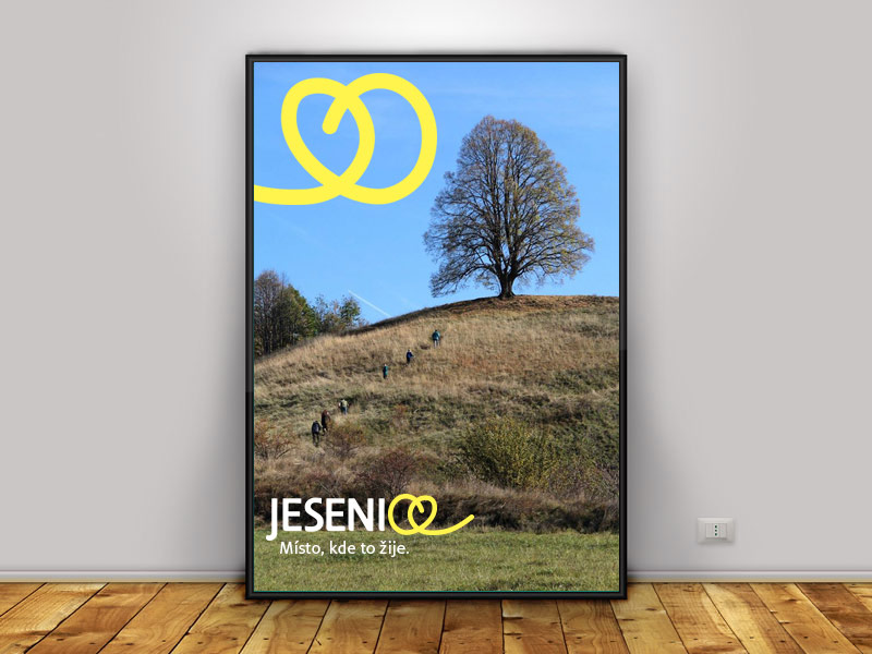 Než začala má samotná práce na logu, předcházel celé tvorbě můj specifický detailní průzkum lokality, zájmových spolků, kulturního dění a samotných obyvatel. Dívala jsem se na profily různých skupin i samotných obyvatel Jesenice a konkrétně jsem zkoumala obecné dění. Proto jsem již od začátku přemýšlela o logu jako o určitém symbolu, který by měl splňovat mnou předem navržené obsahové struktury. Věděla jsem, že logo chci určitě navázat na určitou symboliku lidovosti a s tím související tvarovou lyričnost, hru a pohyb. Když jsem procházela fotografie z akcí města, líbila se mi velká aktivita a velmi široké spektrum kulturních a zájmových akcí, což mě mile potěšilo a na to se navázal první pocit, který jsem v souvislosti s tímto průzkumem a celkově spojeným pocitem s předchozí znalostí Jesenice a jejího okolí. A najednou jsem se znovu podívala na papír, na který jsem skicovala a vizuální kód posledních písmen psacími písmeny napsaného slova “Jesenice” se mi obrazově propojil s tvarovým symbolem radosti, který jsem předchozí den náhodně viděla, proto jsem tuto ideu okamžitě rozpracovávala a čím více jsem uvažovala nad tímto symbolem, tím více jsem jej začínala vidět v několika významových rovinách. Jako první asociace se samozřejmě objevila symbolika srdce, dále jsem jej chápala jako list stromu, symbol se mi také propojil s určitou vodní plochou, se symbolikou vody samotné a v neposlední řadě jako určitý “vzlet”, “let vzhůru” i jakési “gesto vztyčení”.
