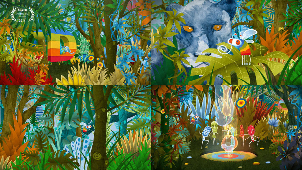 Za posledních několik let jsem hodně spolupracoval s Českou Televizí. Společně s Martinem Hejlem jsme začali redesignem stanic ČT1, ČT2 a ČT24. V těsném závěsu se zakázkou, která mi hodně umožnila uvědomit si, co mě jako ilustrátora baví dělat nejvíce, vývojem grafiky pro nově vznikající dětskou stanici ČT :D. Znělky získaly řadu mezinárodních ocenění televizní grafiky. Nejraději mám duhové ovce co každý den uzavírají vysílání a z té původní sady identů výlet do Rousseauovské džungle.