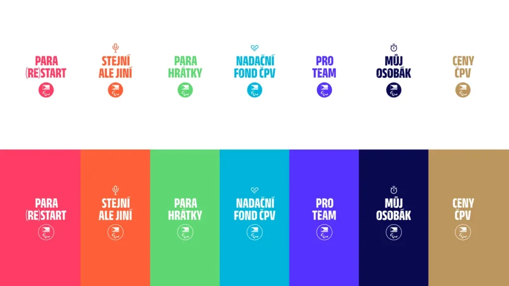 - Nejvýraznějším prvkem identity je autorské písmo Para Headline, jehož specifické zářezy graficky interpretují paralympijský symbol agitos a ideu překonávání bariér.