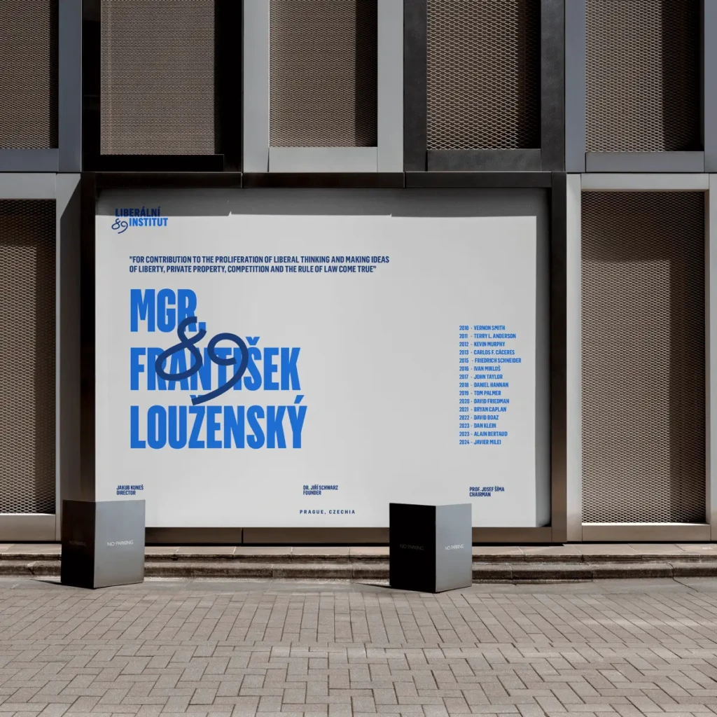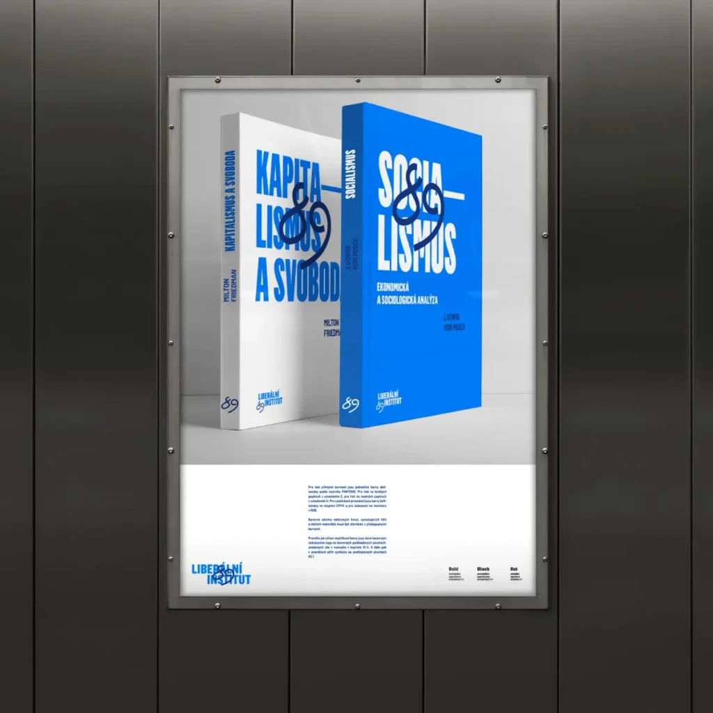 „Liberální institut byl založen v roce 1989, tedy ve stejném roce, kdy proběhla sametová revoluce. Od té doby stojí za osobní svobodou, volným trhem a individuálními právy – stal se jedním z nejvýznamnějších hlasů liberalismu v České republice. Když jsme byli osloveni, abychom modernizovali jejich identitu, bylo nám jasné, že inspiraci nemusíme hledat daleko. Rok 1989 totiž není jen letopočet. Je to symbol. Společně s Helenou Jiskrovou jsme od začátku přemýšleli, jak svobodu zachytit vizuálně – jako emoci, postoj, gesto. Chtěli jsme narušit klidnou čistotu logotypu něčím, co působí spontánně a odvážně. Vzpomněli jsme si na všechna ta graffiti na Berlínské zdi. Na vzkazy psané na ulicích. Nelegální, emocionálně nabité, nespoutané. Helena tak přišla s jednoduchým a silným řešením: “načmárat” „89“ přímo přes logo, tak, jak by to někdo udělal fixem na plakát na ulici.