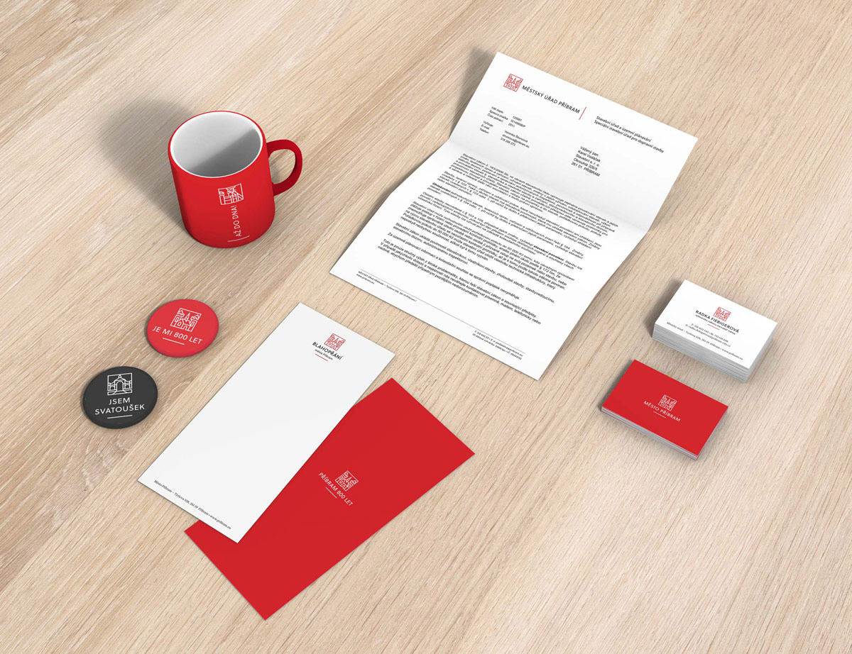 Při hledání vhodného základního kamene vizuálního stylu Příbrami jsem se přesto pokusil o převedení klasického znaku města do současného grafického jazyka tak, aby i při extrémním zmenšení zůstaly klíčové prvky srozumitelné. Návrh vizuálního stylu Příbrami je tudíž postaven s respektem vůči bohaté tradici města a přitom netrpí omezenou funkčností nebo náchylností vůči módním trendům.“