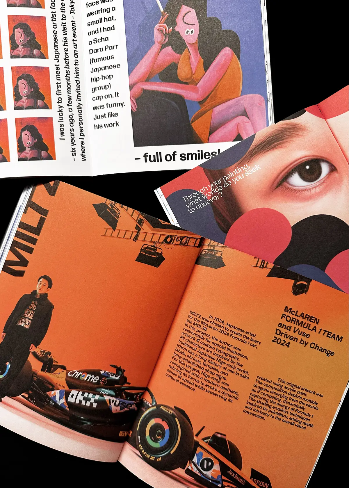 Dva umělce jsem oslovil právě na základě této cesty. MILTZ je kaligraf, který do své tvorby přenáší prvky street kultury a grafického designu, ale přitom zůstává u špičkového řemesla. Byl vybrán jako umělec pro stáj McLaren a jeho práce se objevuje na voze Formule 1 i dalších prvcích týmu. Osobně jsme se potkali v Tokiu a pozval jsem ho k účasti v ZAK 20.
