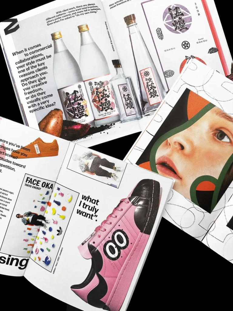 Tištěný ZAK je podle mě trochu niche. Fyzický výtisk v omezeném množství, speciální balení, art sticker set – artefakt doby, sběratelská edice. Online je živá kreativní platforma s rozhovory s japonskými umělci i značkami z různých oblastí. Oba formáty se navzájem doplňují.